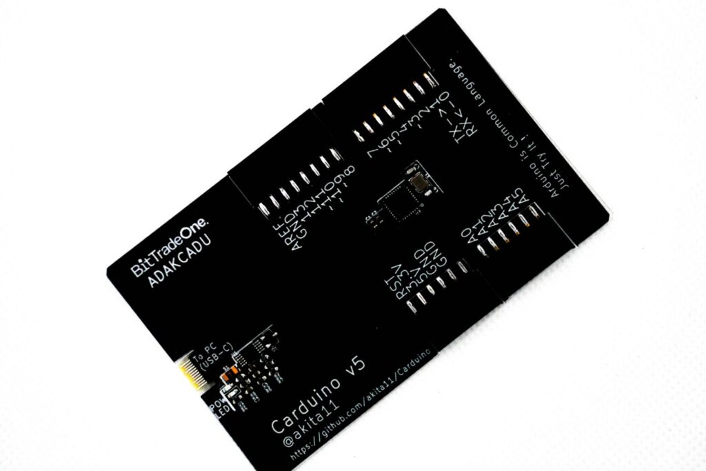 「Carduino」はクレジットカードサイズ、厚さ2.5mmの薄型ArduinoUNO互換機です。