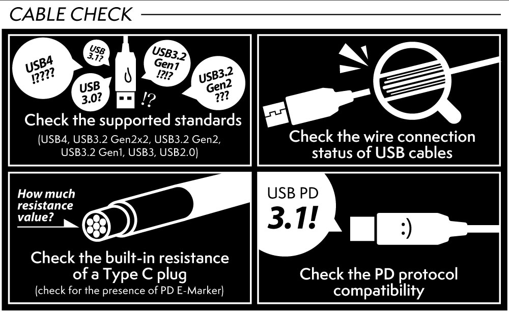 Q: Type-Cケーブルをチェックした際、「cableVDO get failed!」と表示される
