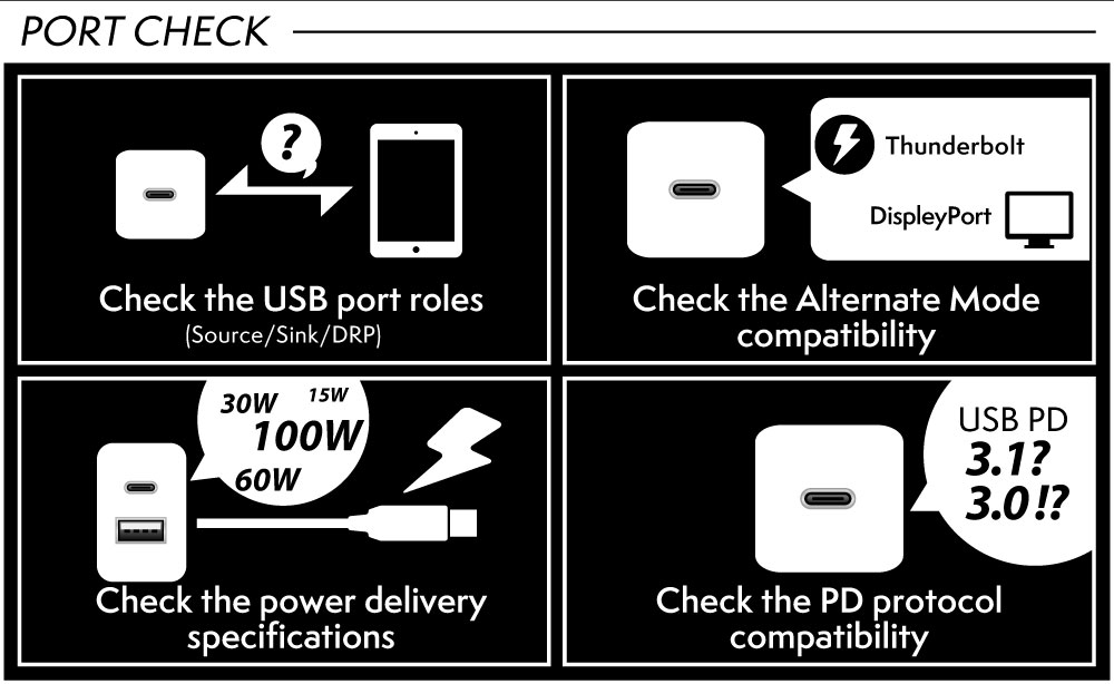 USBケーブルが対応していない機能(EPRやAlternateモード等)は表示されないことがあります。