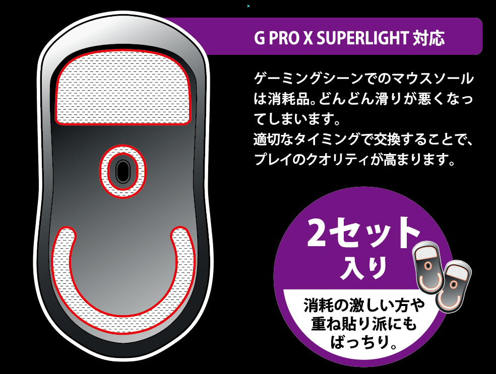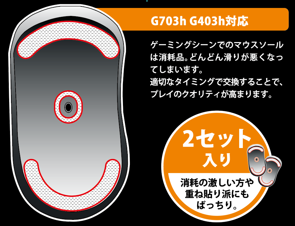 伝統的なIE3.0準拠の楕円型ソールのほか、Logicool製のPRO Gaming Mouseシリーズに対応しています。