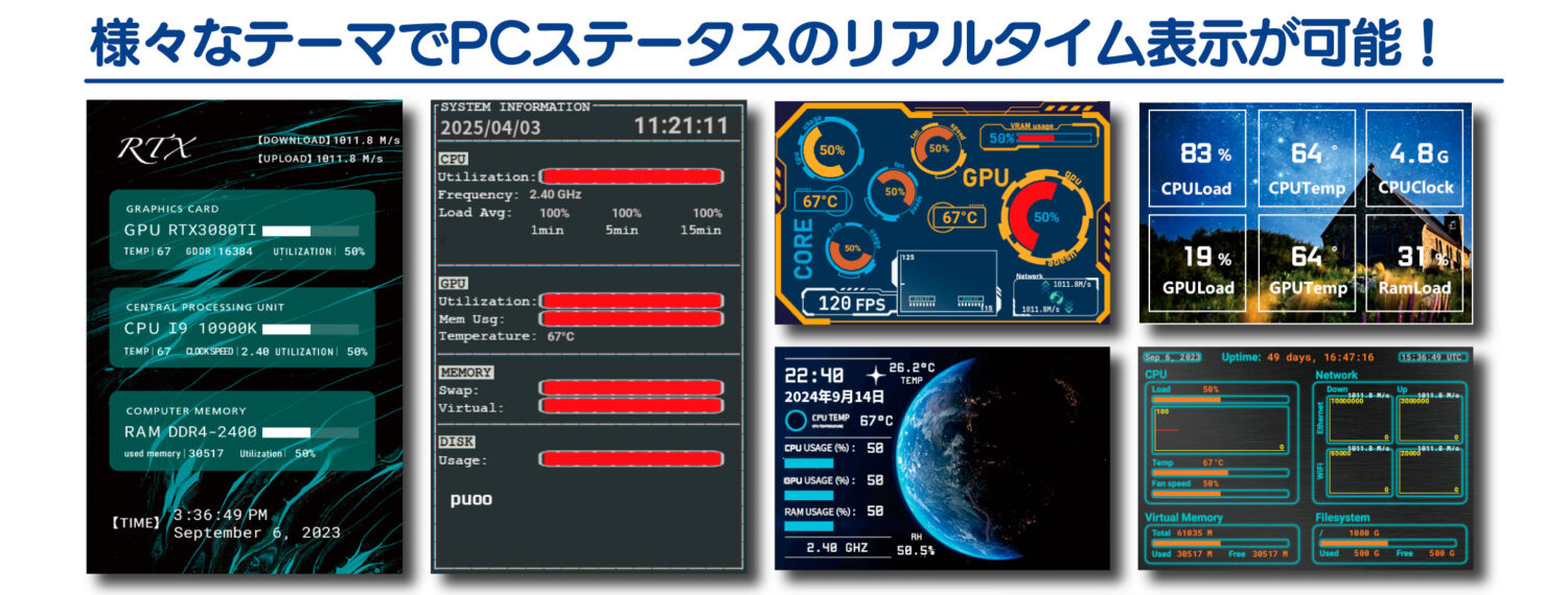 様々なテーマが用意されているので、使い方にあった情報を表示することが可能。