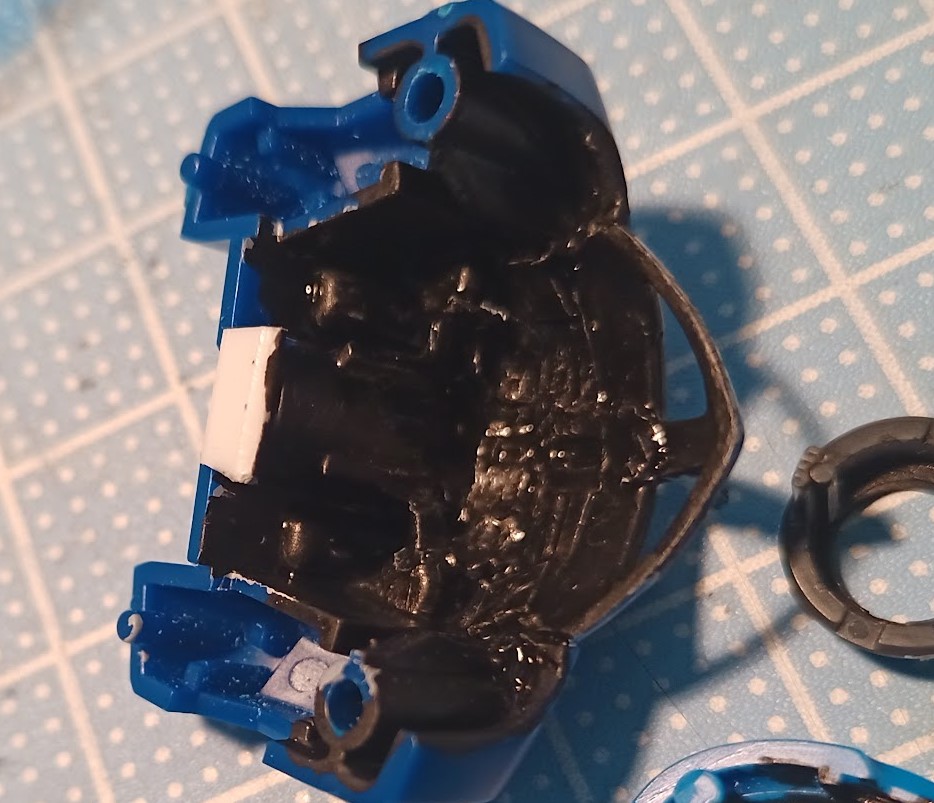 方法: 内部パーツや外装の裏面にブラック塗料を塗布することで、光が透過しないようにします。通常はエナメル塗料やアクリル塗料が使われます。
