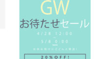 発送がGW明けとなる分、20%オフとお安くお買い物頂けます。 期間 4/28 12:00~5/8 0:00