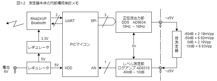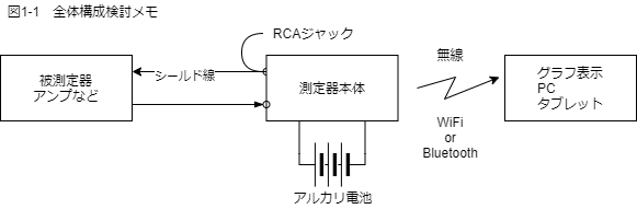 次に測定器本体の中身の構成の検討です。検討メモが図1-2となります。