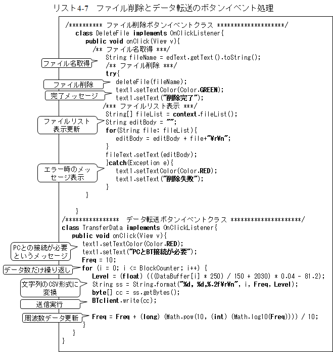 次が削除ボタンとデータ転送ボタンの処理部でリスト4-7となります。