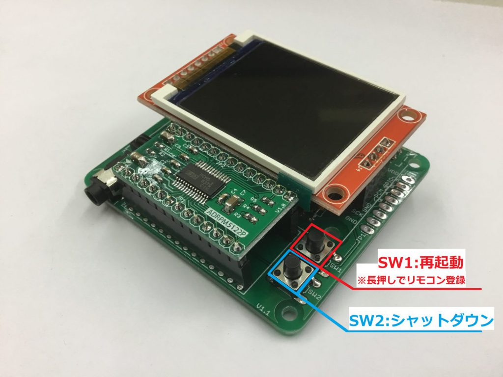 基板上のタクトスイッチで、DACボードの再起動・シャットダウンができます。