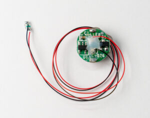 直径約11mm、高さ約5mmの極小サイズにLED、スイッチと電池ケースが一体となった扱いやすいモジュールです。