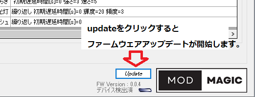 UPDATEボタンをクリックするとファームウェアアップデート手順が開始されます。