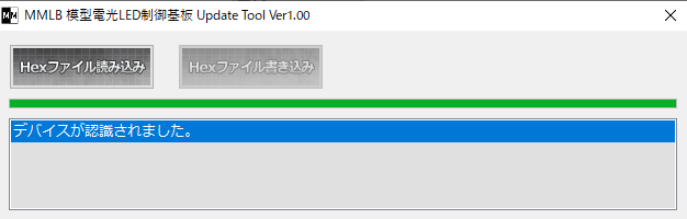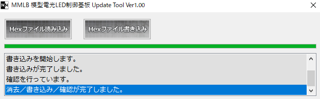 Hexファイル読み込み後、”Hexファイル書き込み”ボタンをクリックするとファームウェアのアップデートが開始されます。