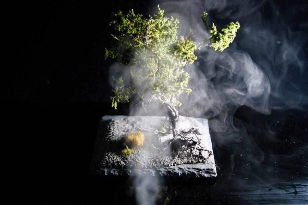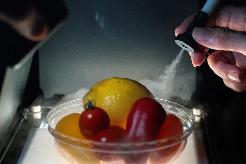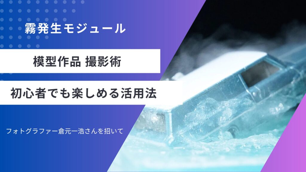 一般的なスモークマシンと違い、霧の発生に熱源を使用しないため小型で安全性が高く、可燃性の被写体や模型など、熱に弱い素材の近くでも手軽に使えます。