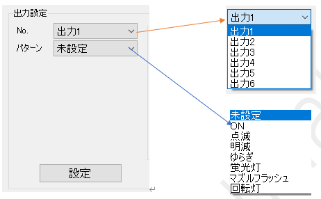 回転灯のみ1~3、4~6の出力を強制的に書き換えます。