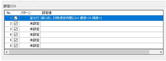1.設定リスト:各チャンネルの点灯状態や設定を一覧で確認できます。