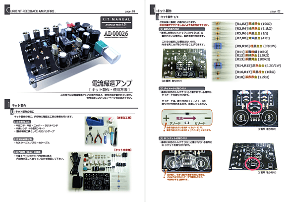 電子工作入門者の方でも簡単に組立が可能な図解入りの詳細マニュアルが付属、ハンダ付け初心者にも迷わず安心して組み立てを楽しむことができます。