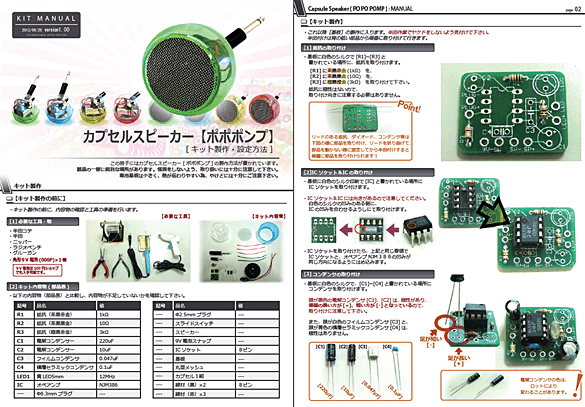 アンプ内蔵 カプセルスピーカーを自作できる電子工作キット”ポポポンプ”