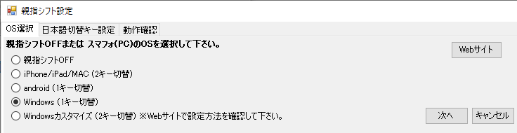 | キー入力 | Windows機能 |