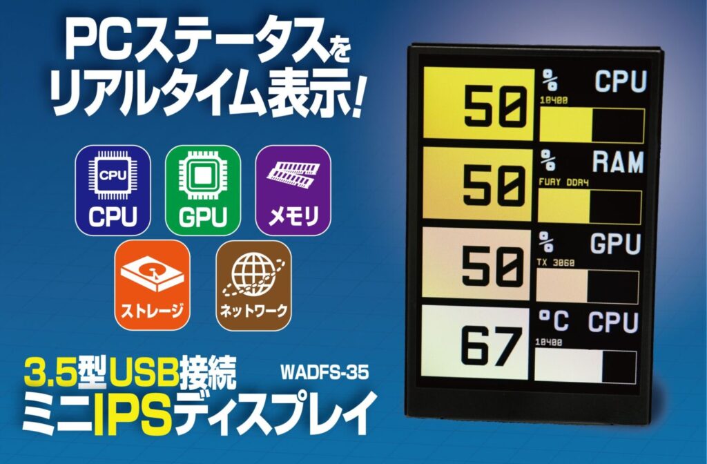 WADFS-35 PCパフォーマンスを常時監視!USB接続3.5型ミニIPSディスプレイ「WADFS-35」